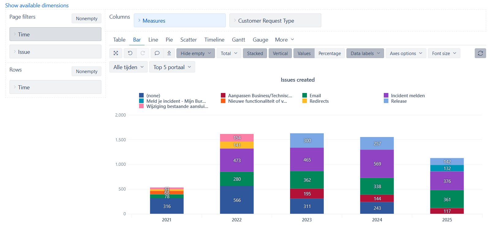 ASC or DESC on stacked results on a timeline