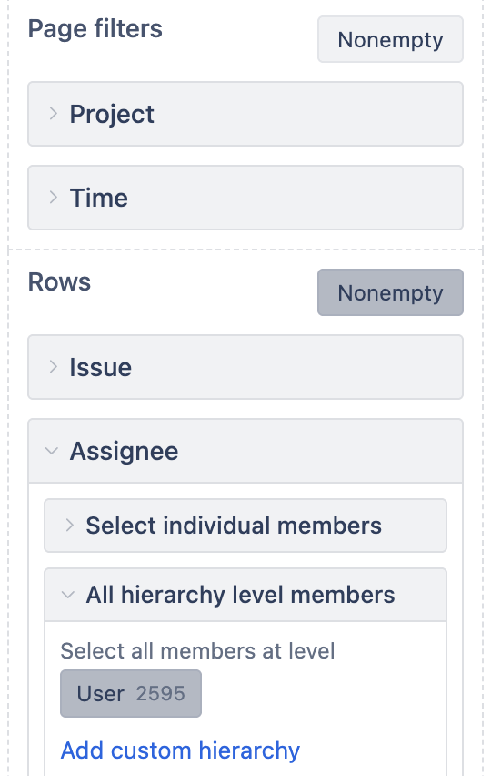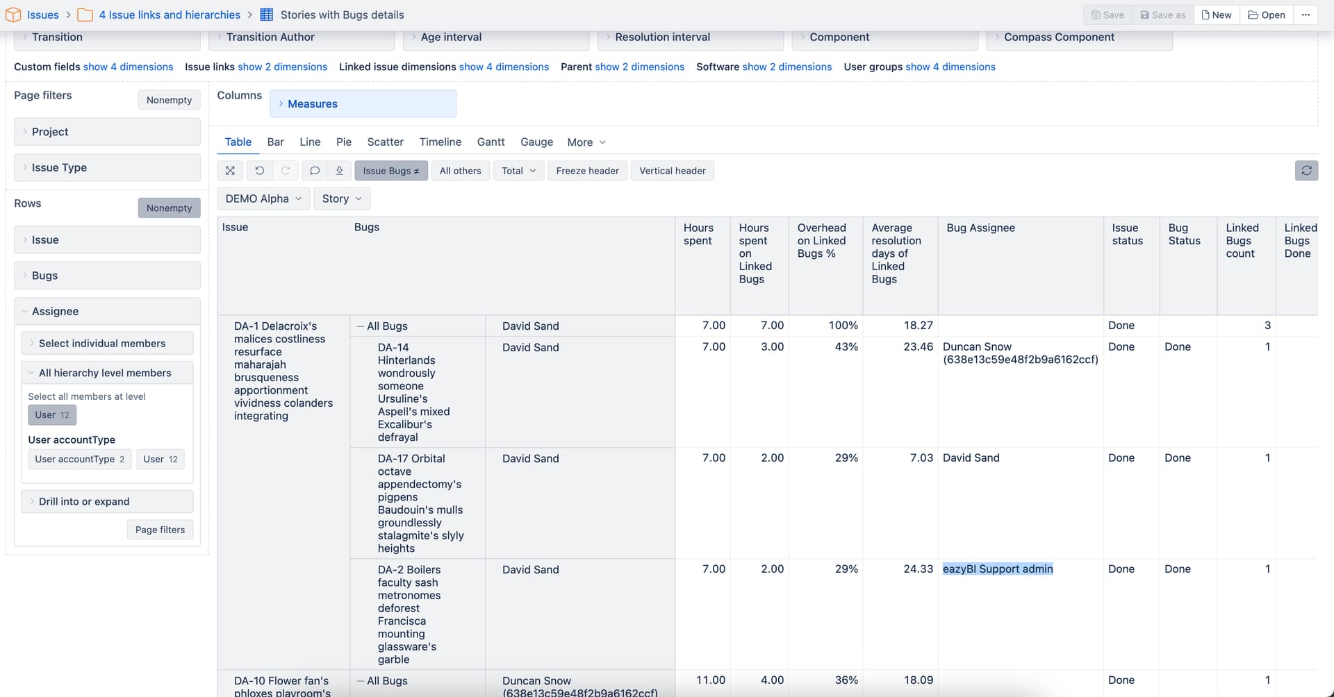 This doesn’t work quite as I expect, or I’ve done something wrong. When using the Assignee “All hierarchy level members” in the Rows, I get the task assignees, not the assignees of the associated bugs.