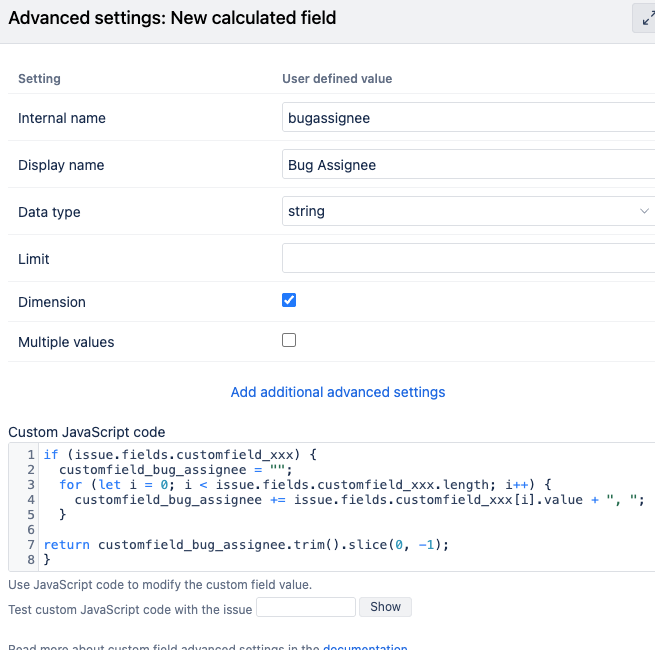 For having the Bug Assignee as a Dimension you have to go to the Source Data → Custom Fields and at the bottom you will see the “add new calculated member”, click on that on in the pop up something like this: