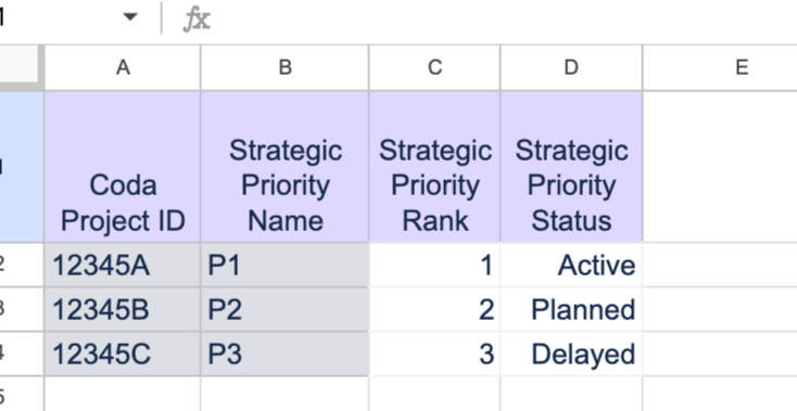 The first column in your data mapping should be your dimension Coda Project ID. These should be the values of the Dimension Coda Project ID that also exist in Jira. Make sure you mark it as a name column and enable Skip Missing checkmark.