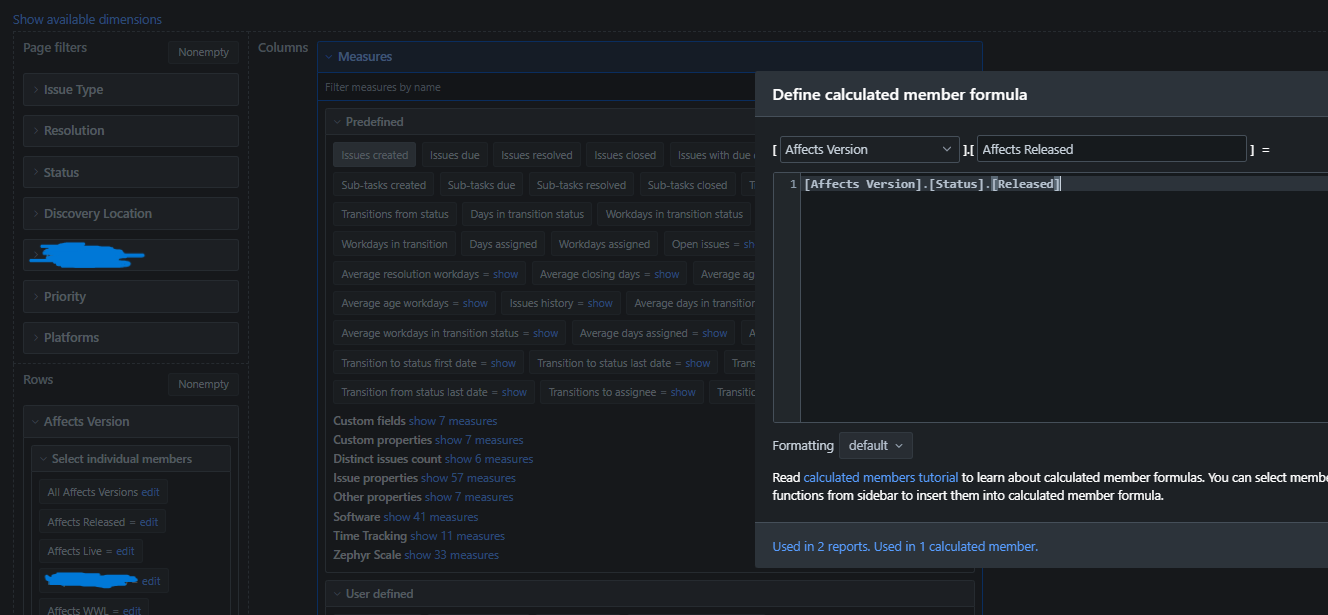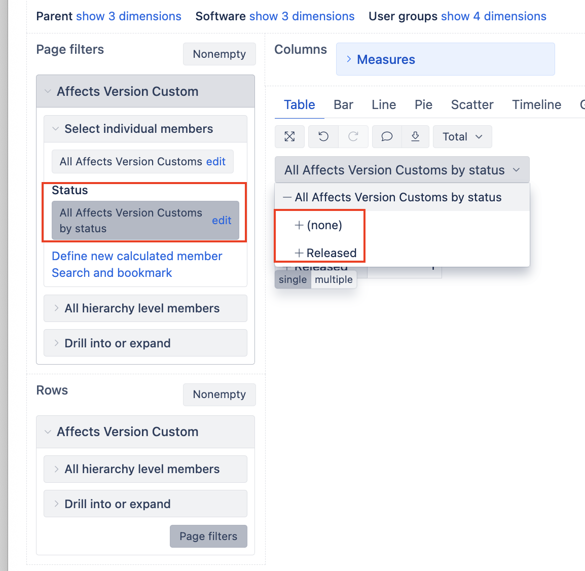With this approach is it possible to have something like [Affects Version].[Status].[Released] as a Dimension Calculated Member?