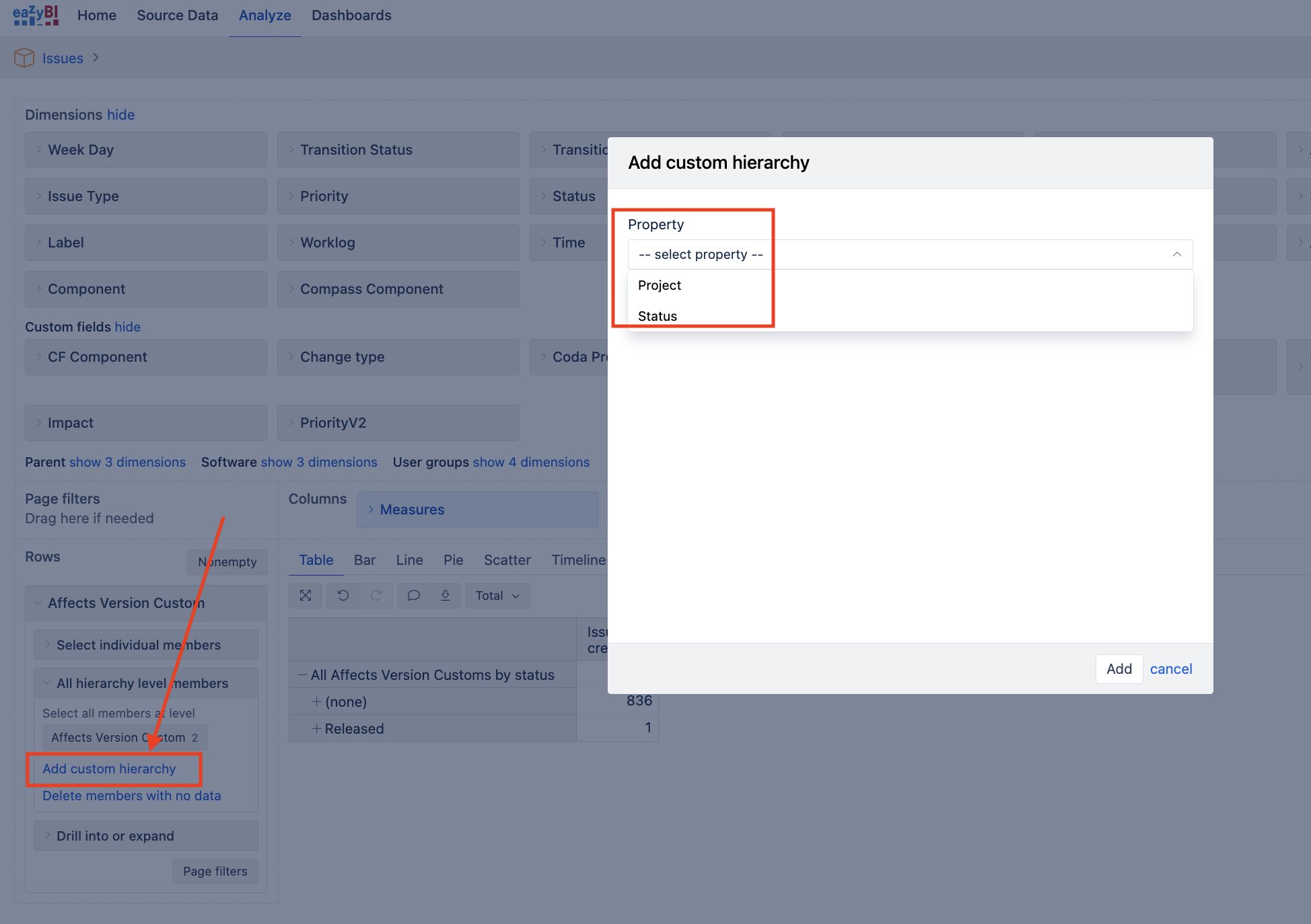 I’ve created a custom version and am importing it into EazyBI but it is missing the Hierarchy Members that Affects Version / Fix Version have.