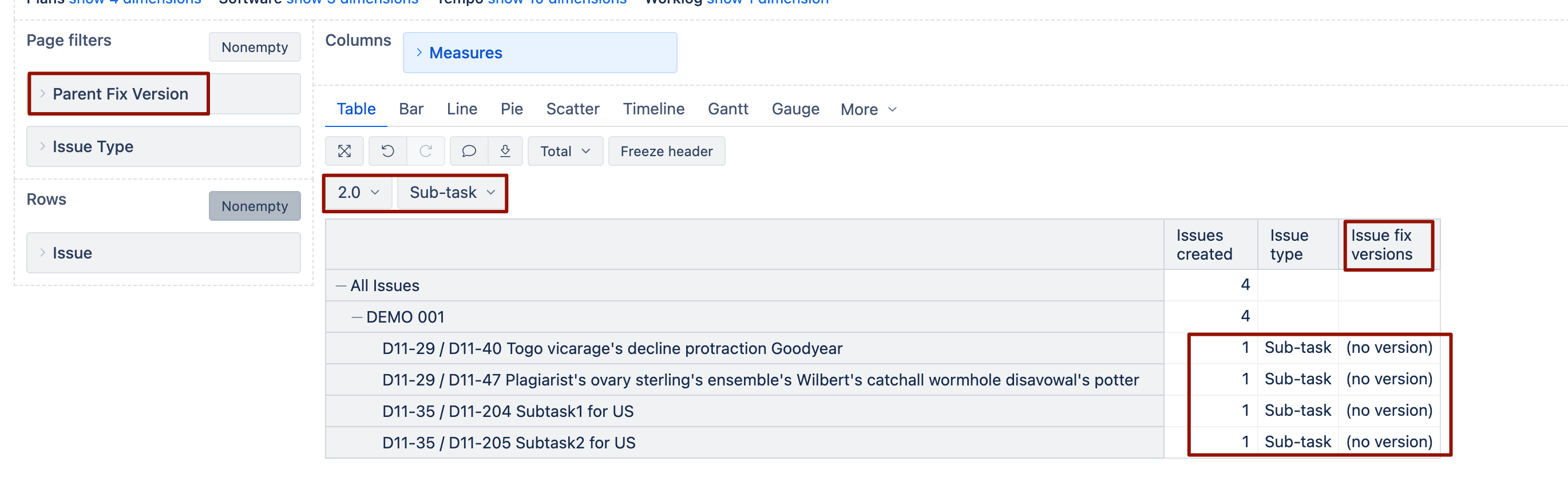 Then use Parent FixVersion to filter the report and issue type dimension page filter set to “Sub-tasks”