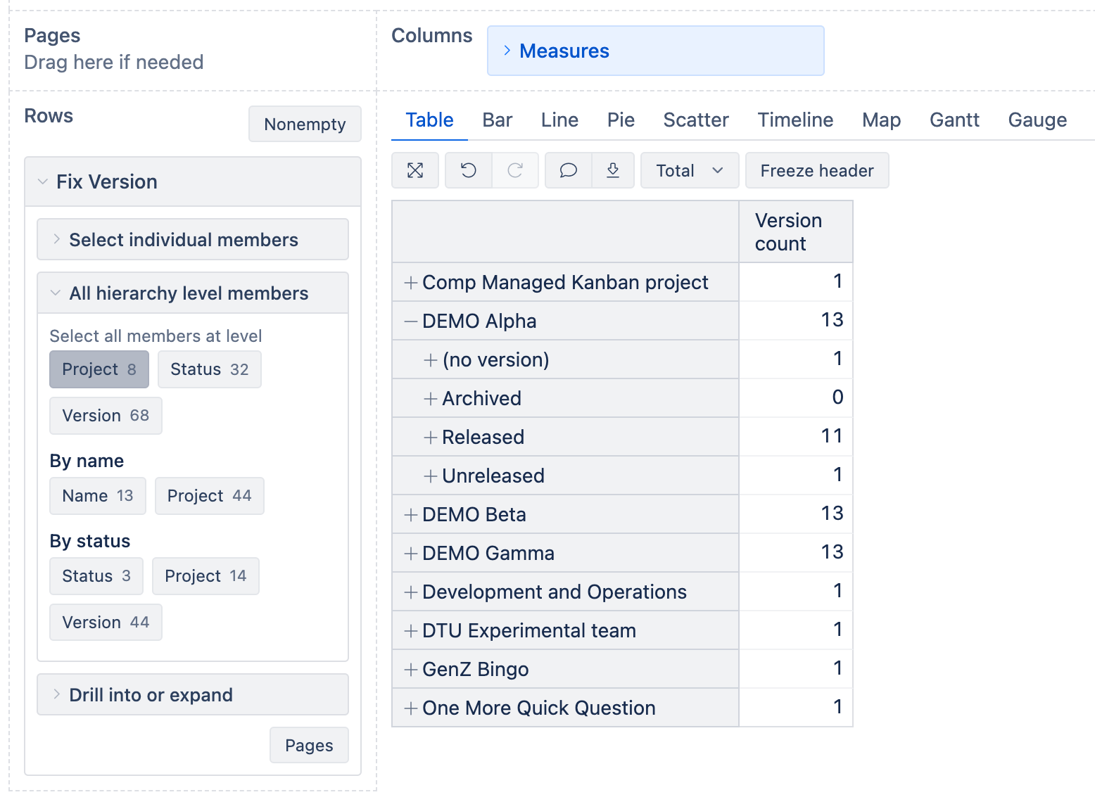 Then you’ll have a report like this that counts the total number of versions and the unreleased ones: