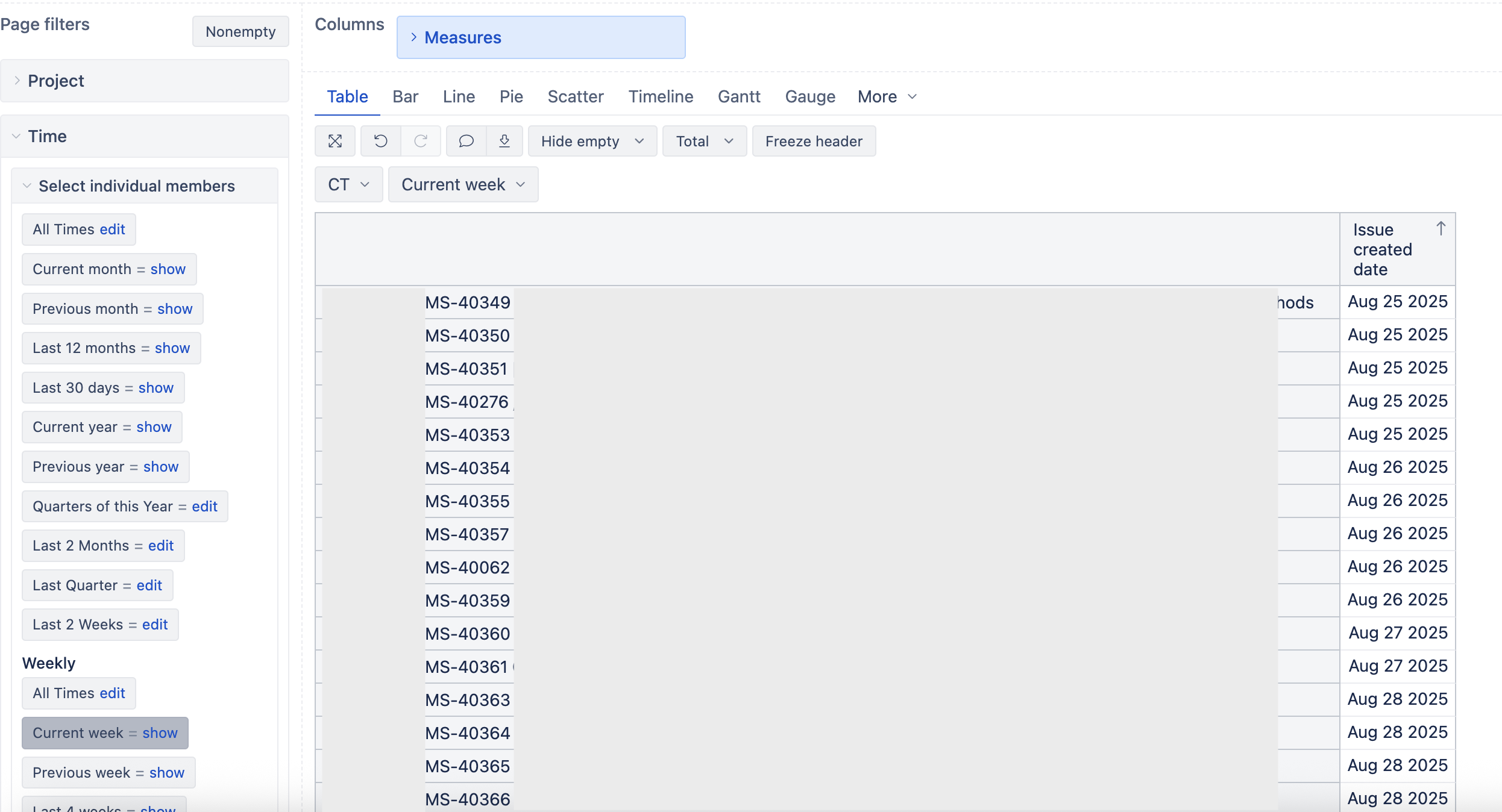 At Columns, just the measure “Issue created date”