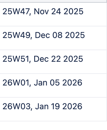 With the code below and see if you are able to extract the naming. The JavaScript code I provided extracts the sprint pattern directly from the sprint name (the last 11 characters) and doesn’t use dates or week alignment at all.