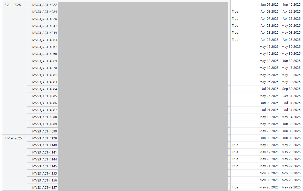 I want to list in a table all the issues that we should work on accross the months, according to Target Start and Target End properties from Advanced Roadmap.
